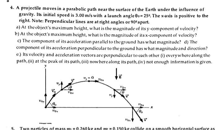 A Projectile Moves In A Parabolic Path Without Air Resistance A Is There Any Point On Its Path At Which The Acceleration A Is Parallel To Its Velocity V